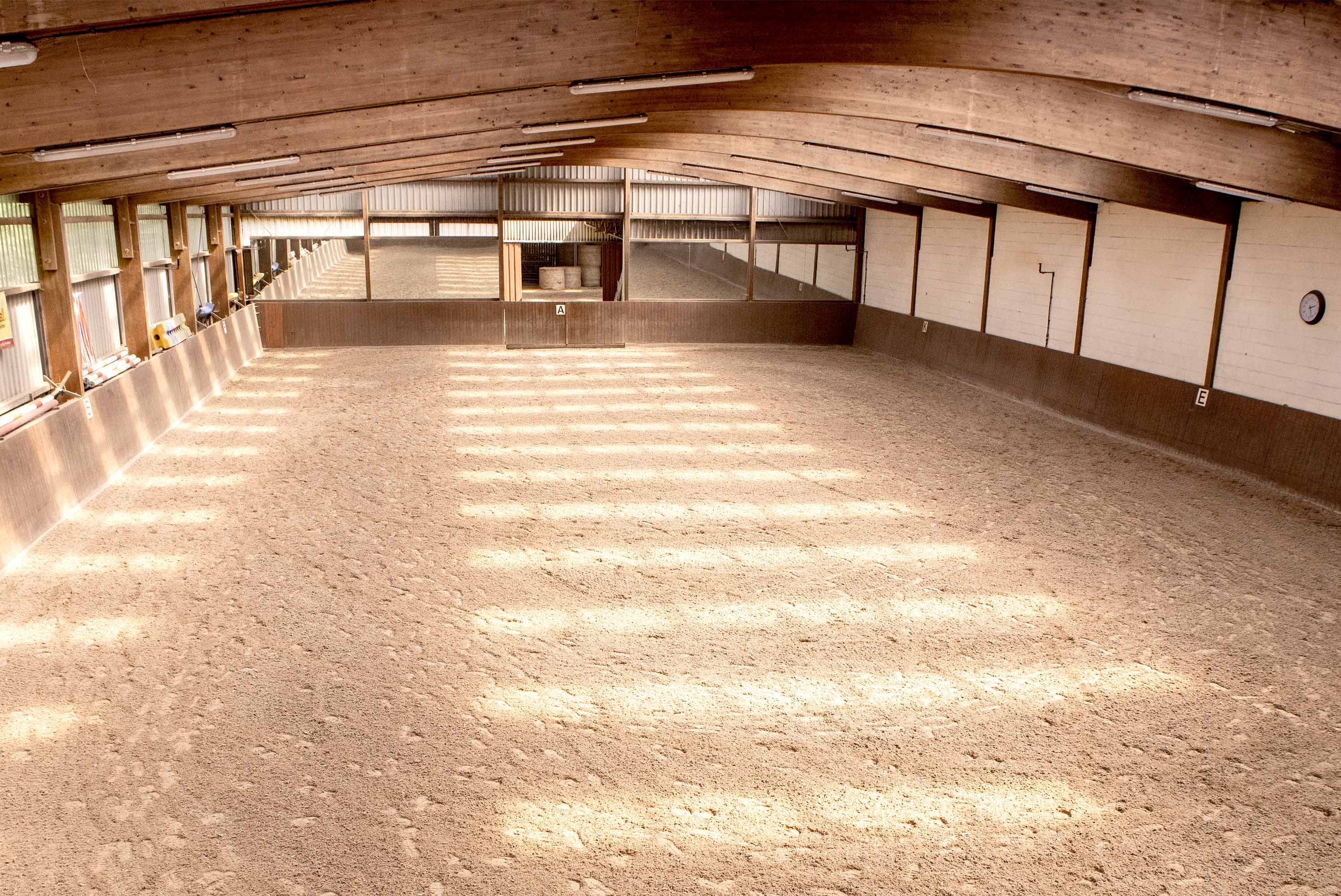 - Eine geräumige Longier- und Lagerhalle mit 2 Longierplätzen oder Raum für Bodenarbeit